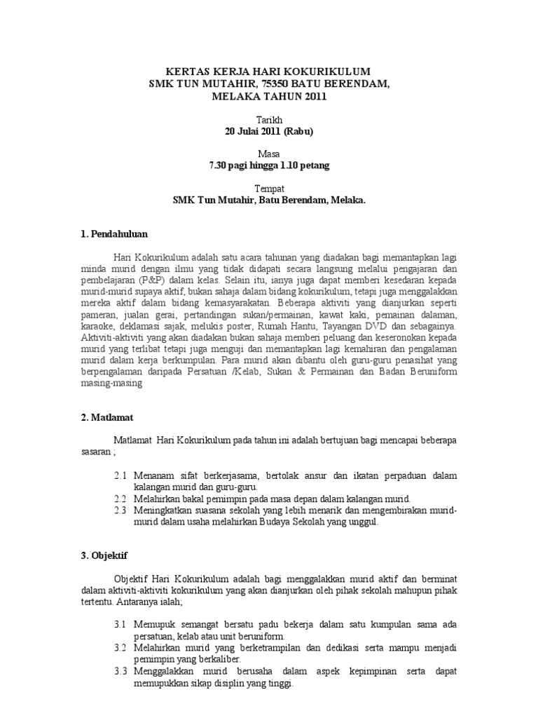 Contoh Kertas Kerja Kokurikulum Pdf